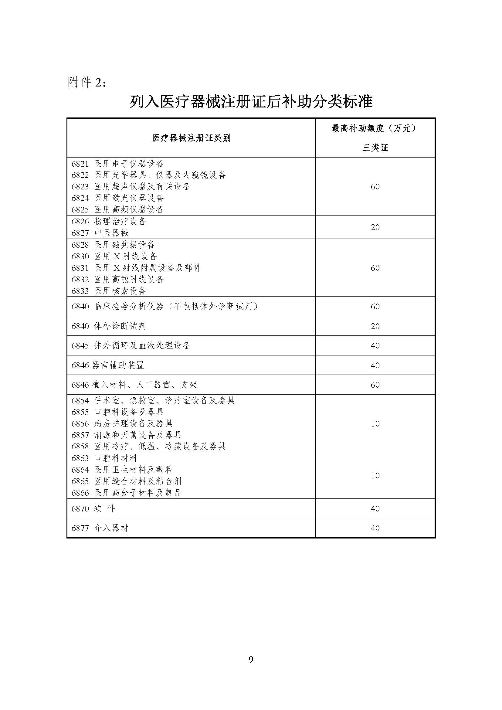 2.列入医疗器械注册证后补助分类标准
