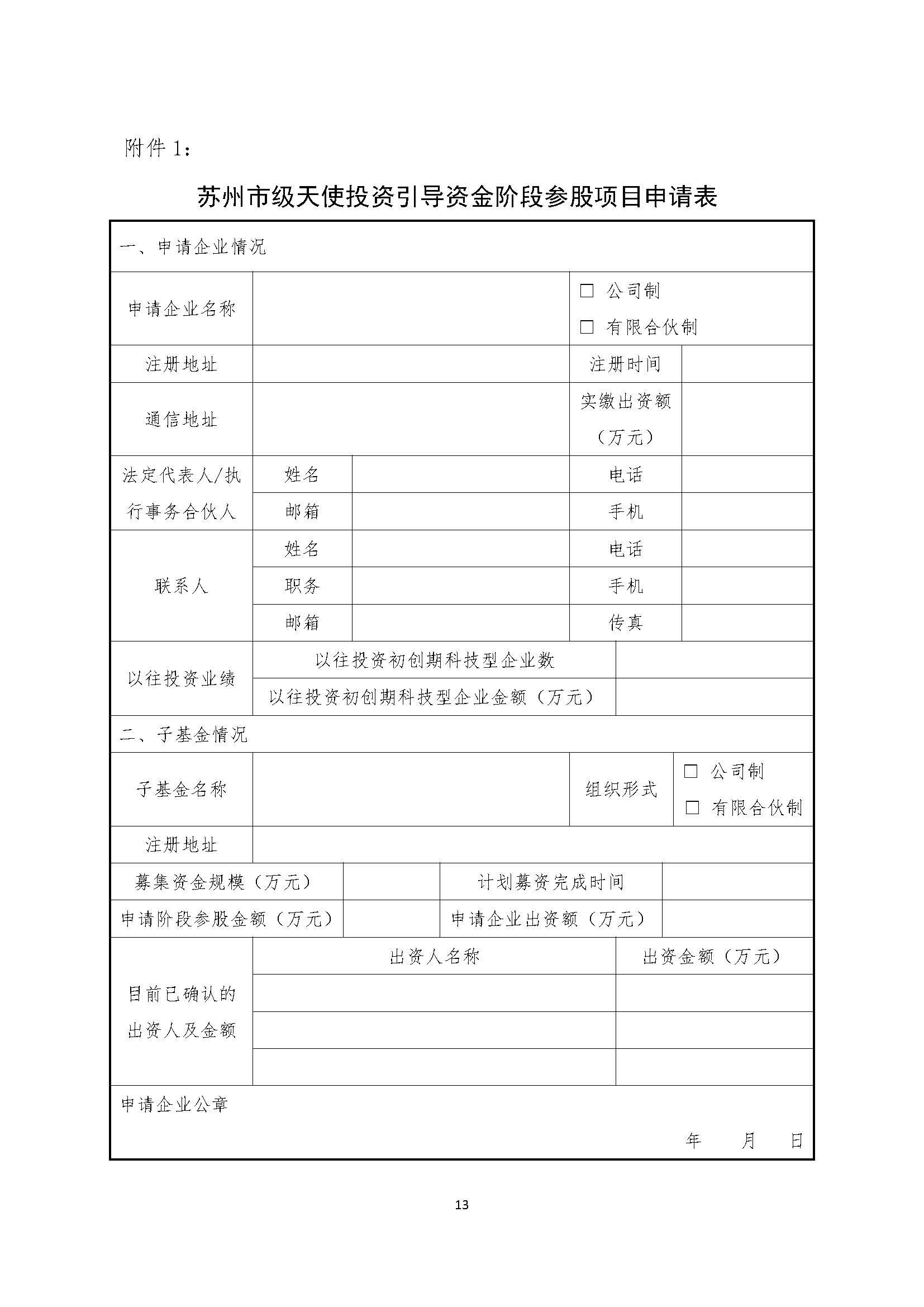 1.苏州市级天使投资引导资金阶段参股项目申请表